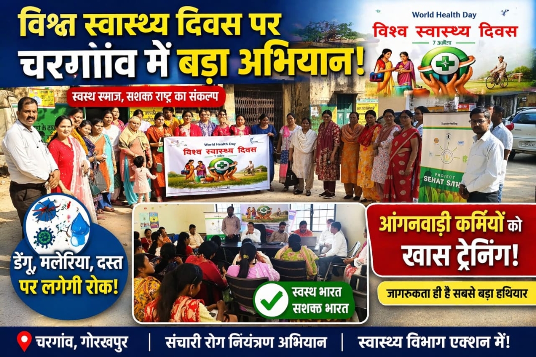 विश्व स्वास्थ्य दिवस के अवसर पर विकास खंड चरगांवा में संचारी रोग नियंत्रण एवं दस्तक अभियान के तहत एक व्यापक जागरूकता एवं प्रशिक्षण कार्यक्रम का आयोजन किया गया। इस कार्यक्रम का मुख्य उद्देश्य आमजन में स्वास्थ्य के प्रति जागरूकता बढ़ाना और जमीनी स्तर पर कार्य कर रही आंगनवाड़ी कर्मियों को प्रभावी प्रशिक्षण प्रदान करना रहा।